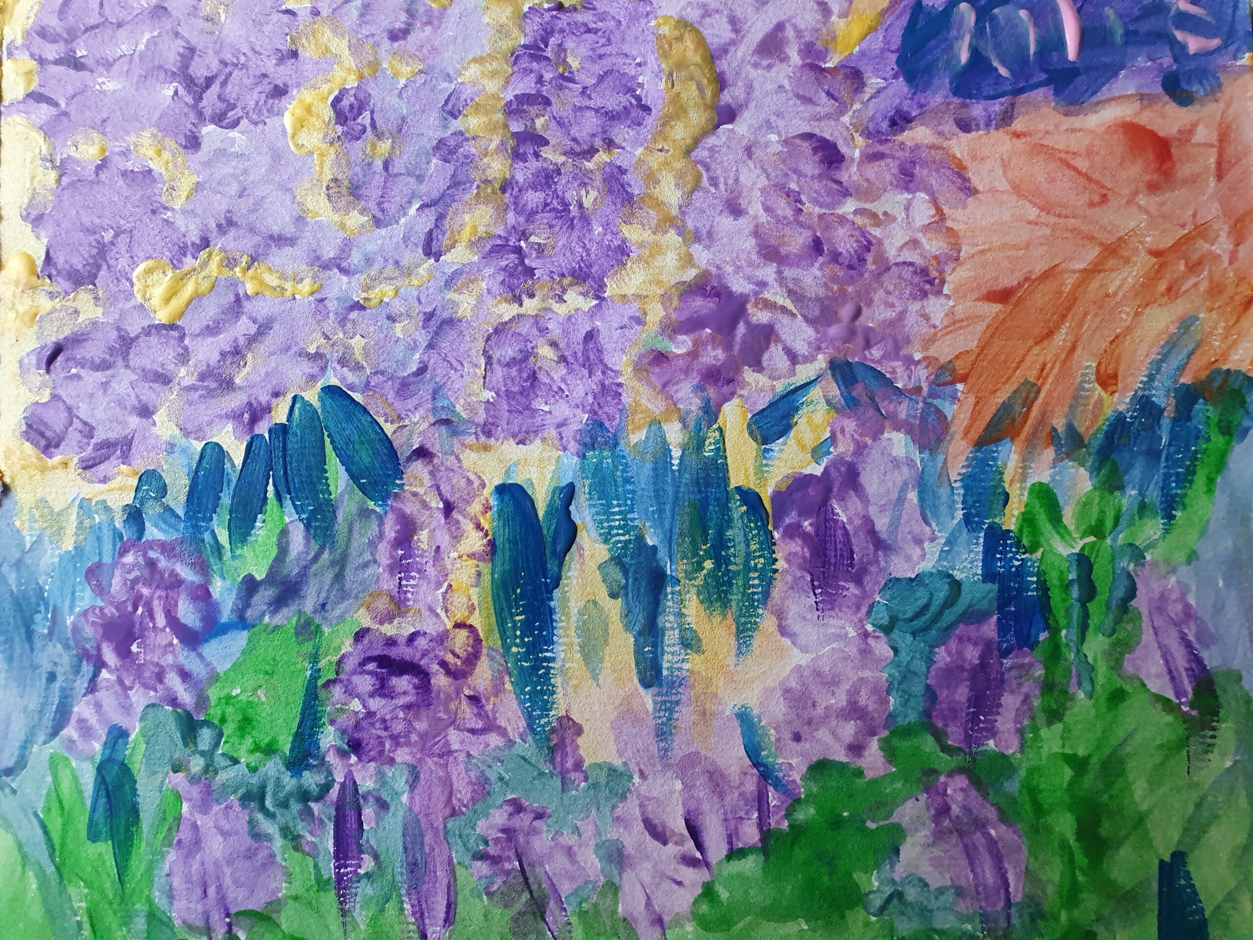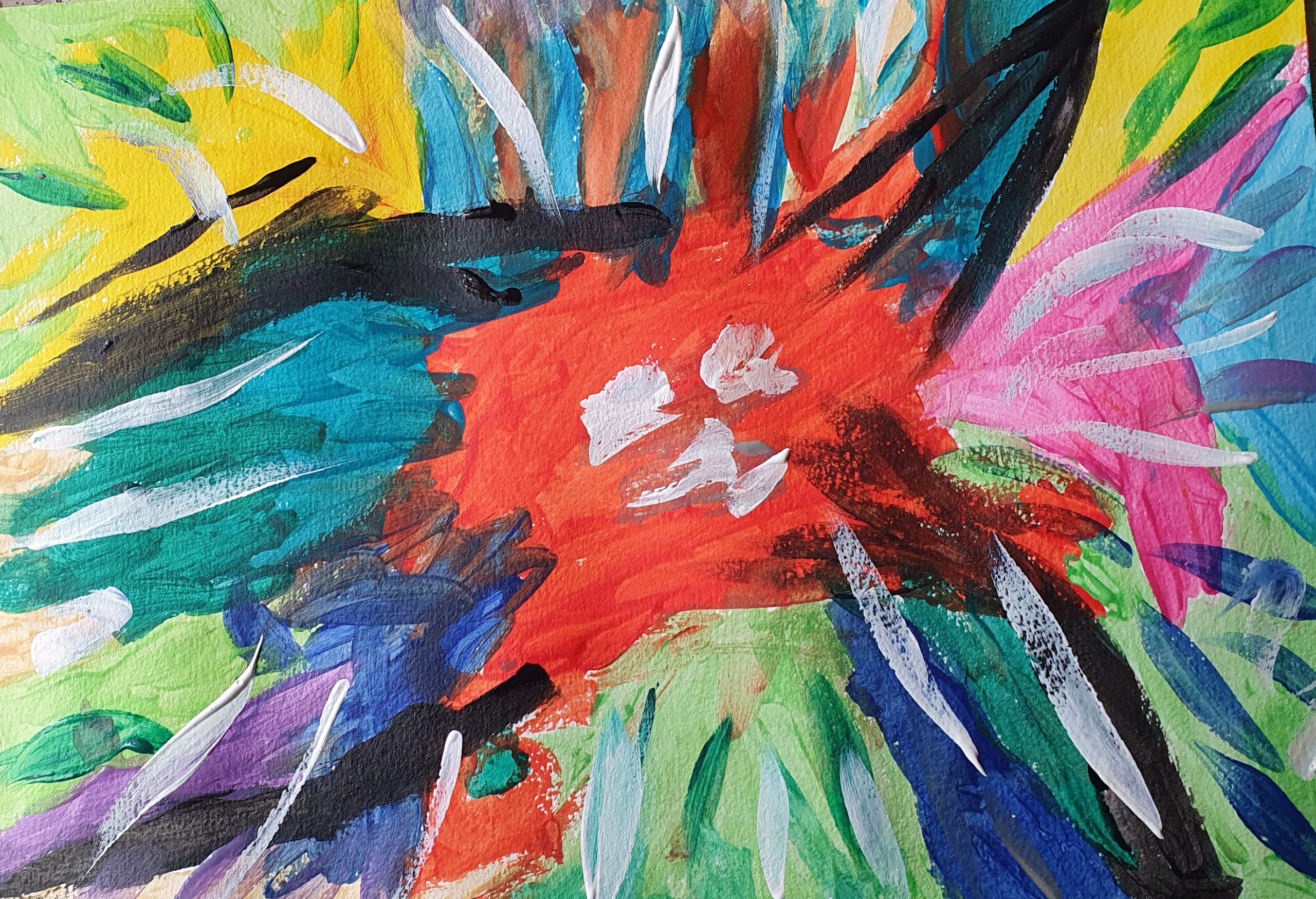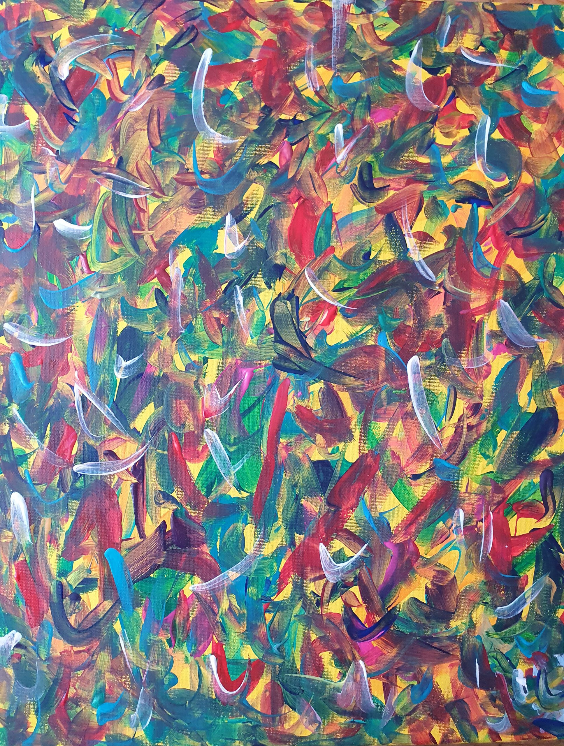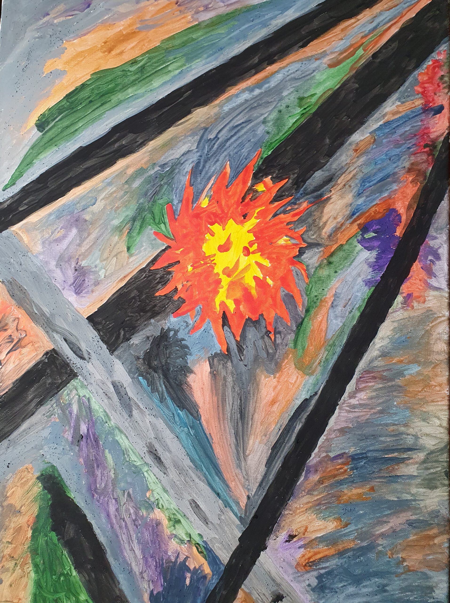 Ende 2023 wurde ich am Knie operiert, das Knie ist zwar verbesse- rungswürdig. Da aber in jeder Minusvariante ein Plus versteckt ist, hatte ich in der Reha einen Malkurs besucht. Seitdem experimentiere ich ein wenig mit Farben …