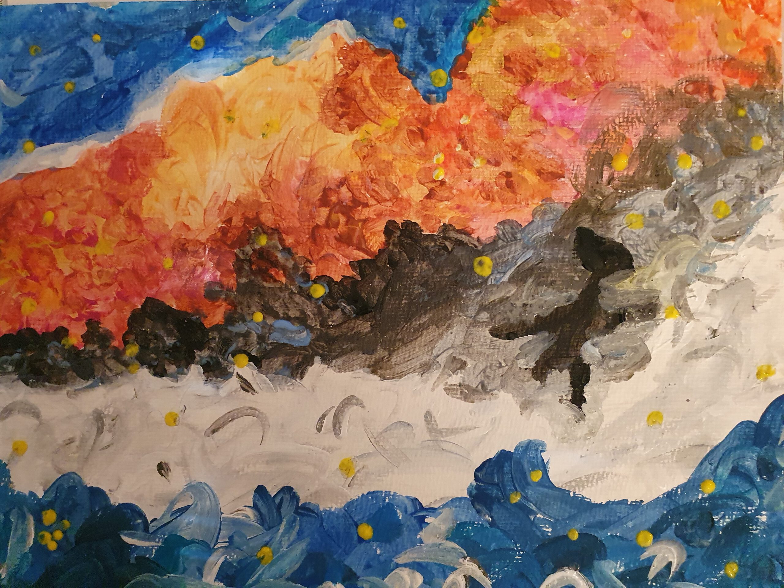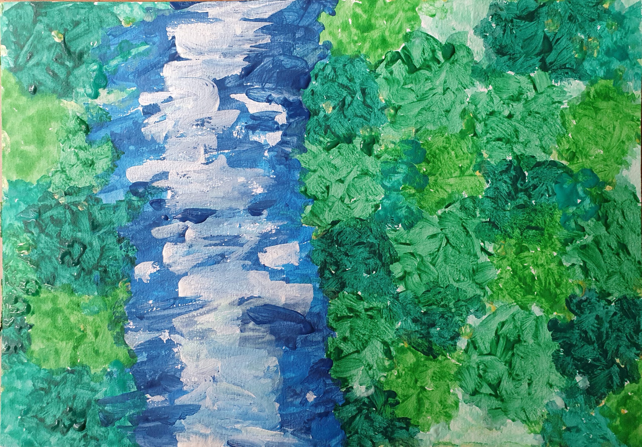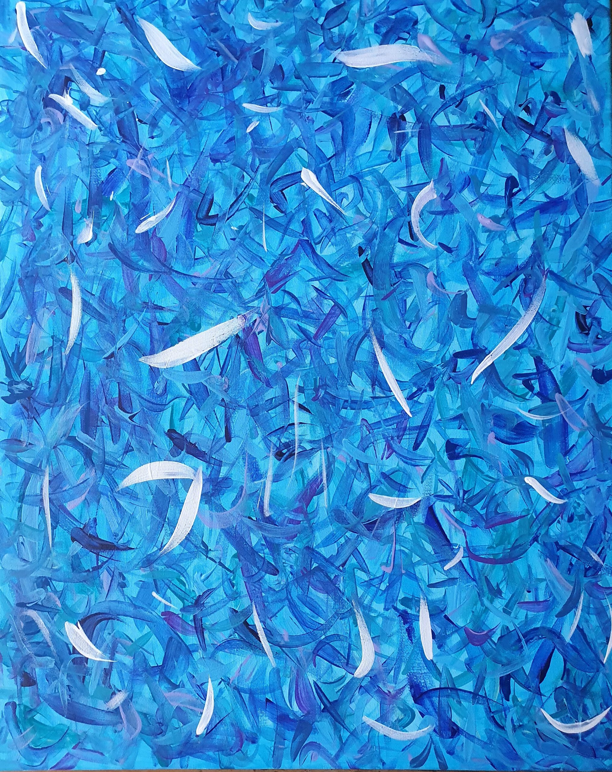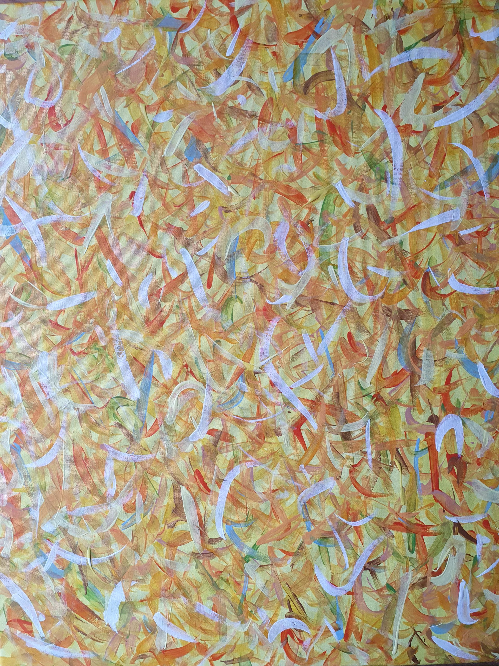 Ende 2023 wurde ich am Knie operiert, das Knie ist zwar verbesse- rungswürdig. Da aber in jeder Minusvariante ein Plus versteckt ist, hatte ich in der Reha einen Malkurs besucht. Seitdem experimentiere ich ein wenig mit Farben …